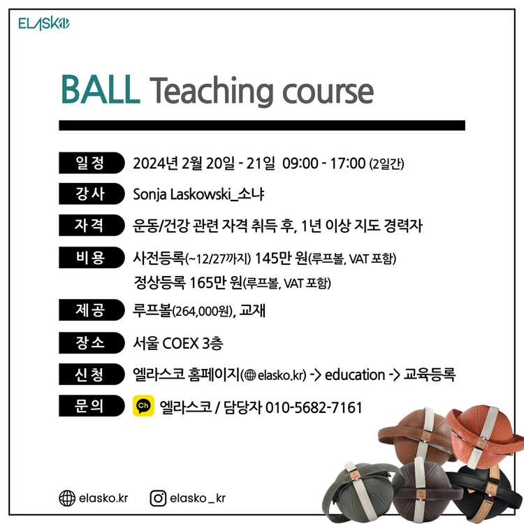 Elasko Ball Teaching course / 2024.02.20~21 / 송순자 마스터 특별할인(145만->140만) / 1월 11일 까지!SALE